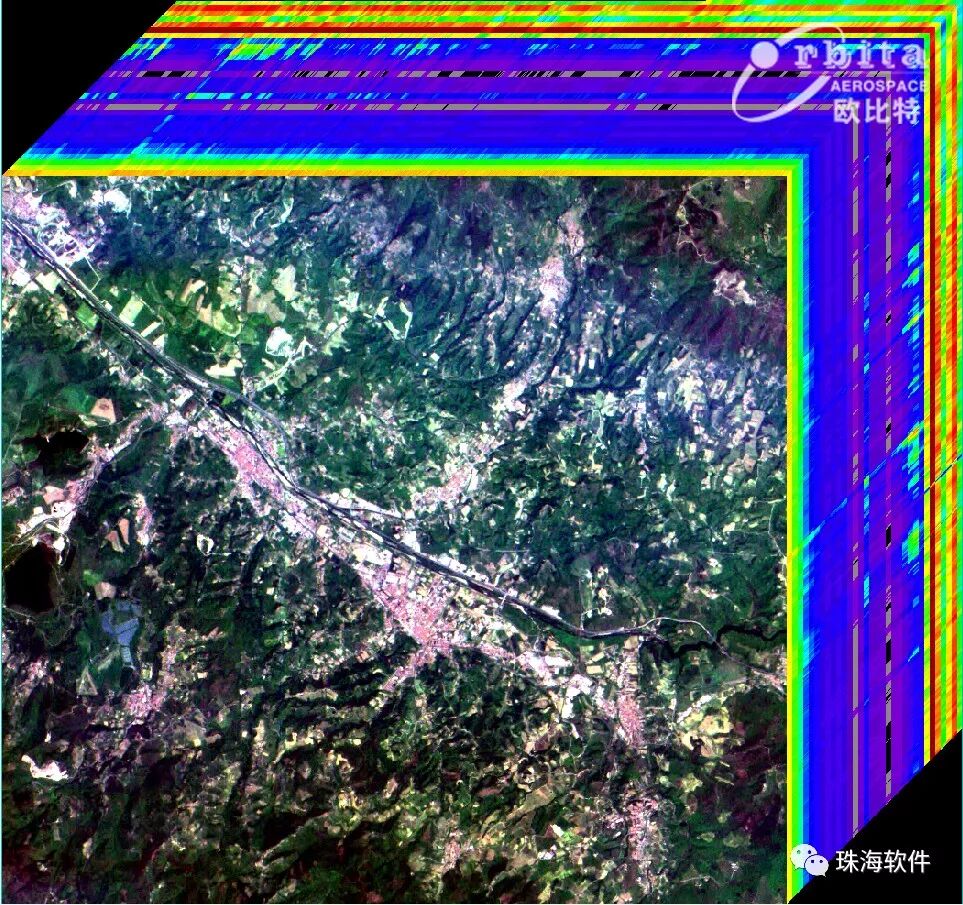 上图为2018年4月27日OHS-02高光谱卫星拍摄阿雷佐区域的高光谱图像(32个波段高光谱立方图)